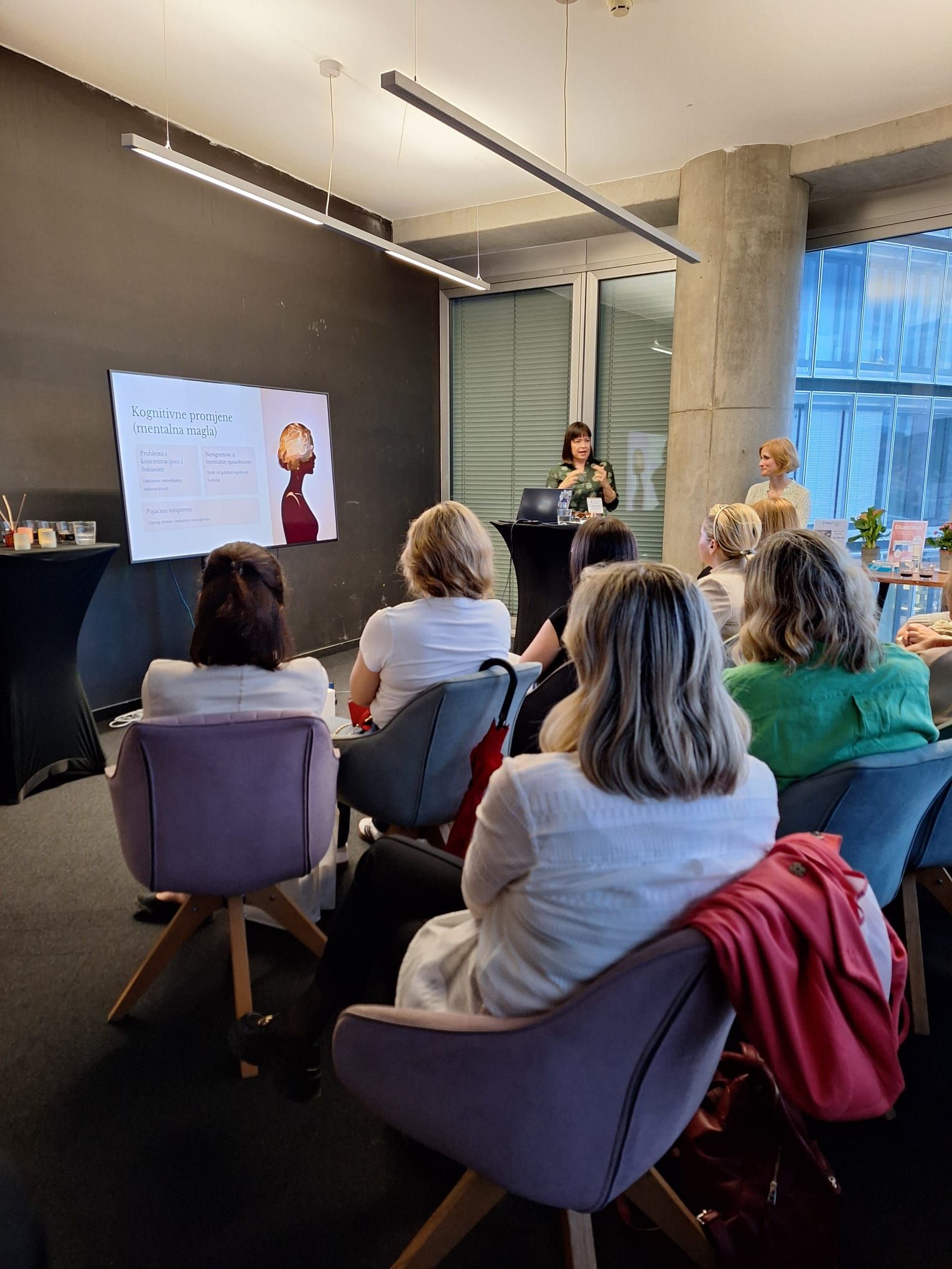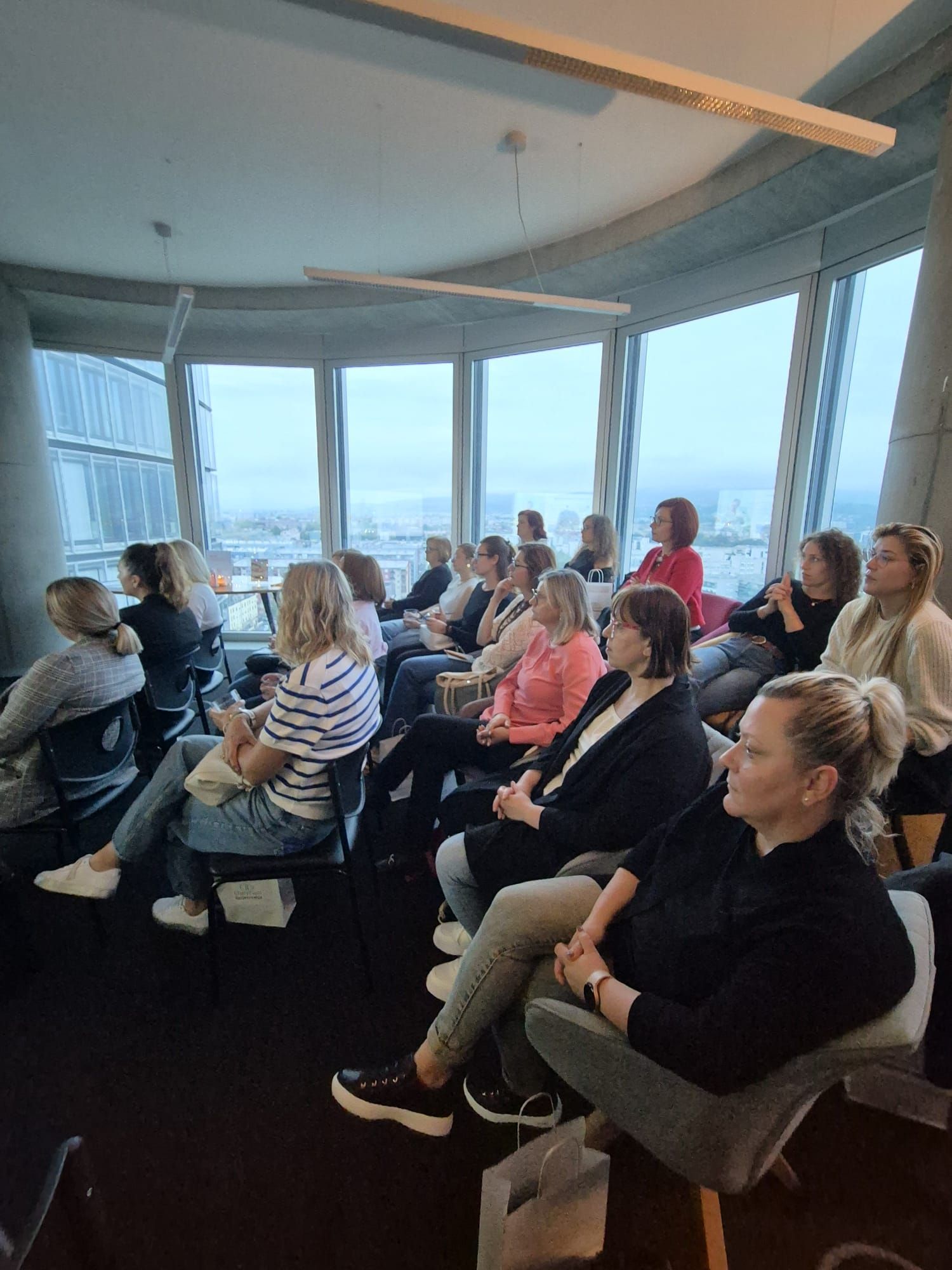 Događaj se odvijao u inspirativnom okruženju 14. kata Sky Office nebodera, uz predivan pogled na Zagreb i Medvednicu, u društvu 25 polaznica i kolegica iz struke. Ovim projektom želi se pružiti stručna podrška i relevantne informacije ženama, s ciljem poboljšanja kvalitete života u perimenopauzi i menopauzi.